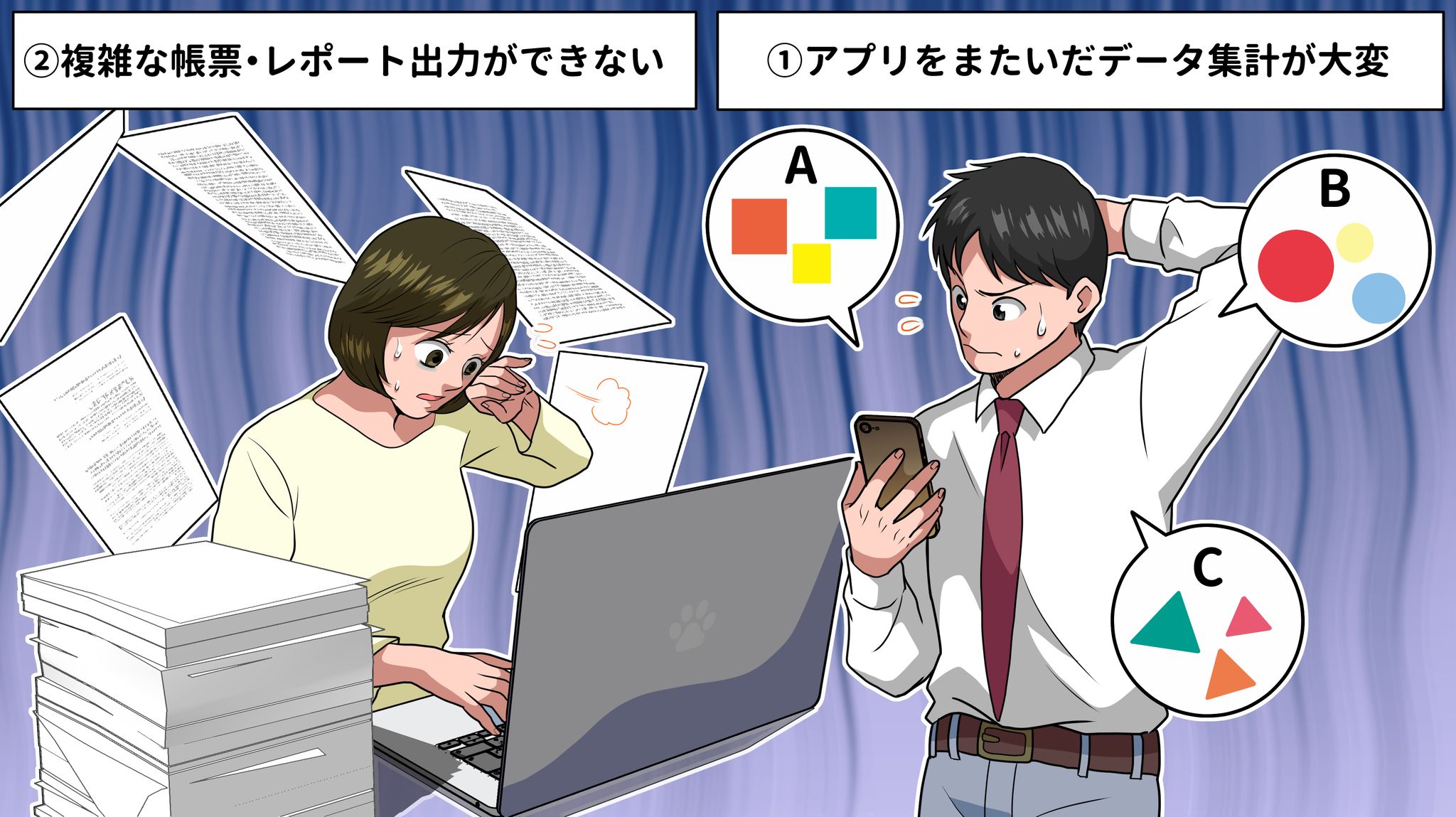 - アプリ横断の複雑集計が難しく、結局Excelでの手作業が発生