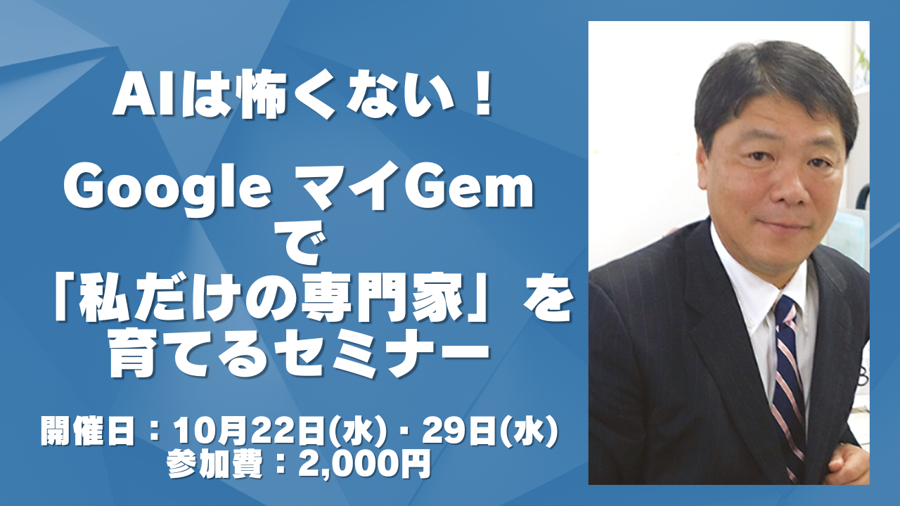 AIは怖くない!Google マイGemで「私だけの専門家」を育てるセミナー